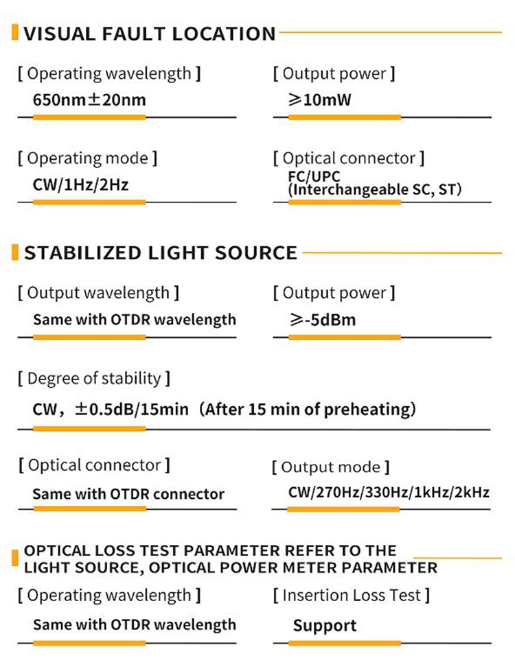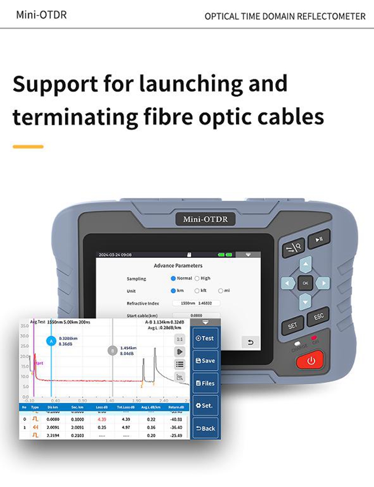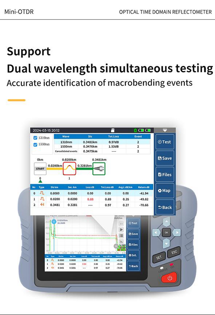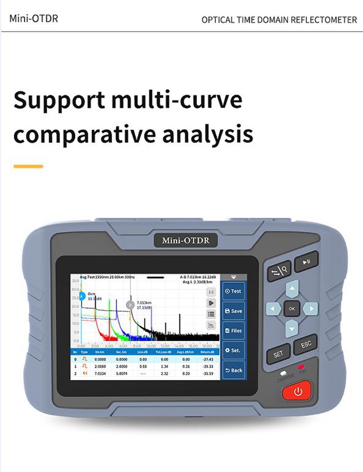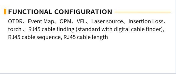 - This series of OTDR is a multi-functional optical measuring instrument, which OTDR, event map, visual fault location, RJ45 Test (cable line length, sequence test, cable tracking), optical multimeter (Laser Source, optical loss test), optical power meter, end face detection, and other functions. It has touch screen and keys. It is the right assistant for optical cable construction, installation and maintenance, project acceptance and on-site repair.