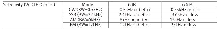 - Audio response (SSB): no more than -6dB for 300 to 2700Hz