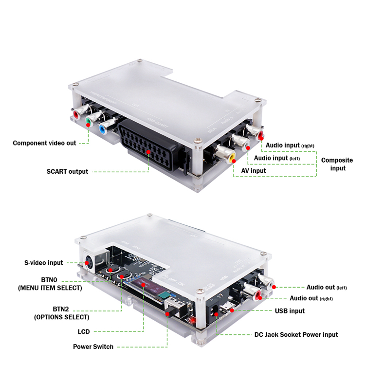 Convert composite and s-video signals into component and SCART signals, with smoothing and line-doubler options. It can not only be used in conjunction the OSSC, but can also be used as a standalone converter product on older TVs.