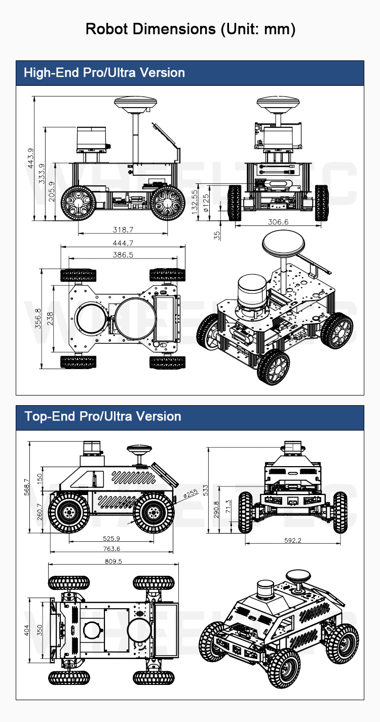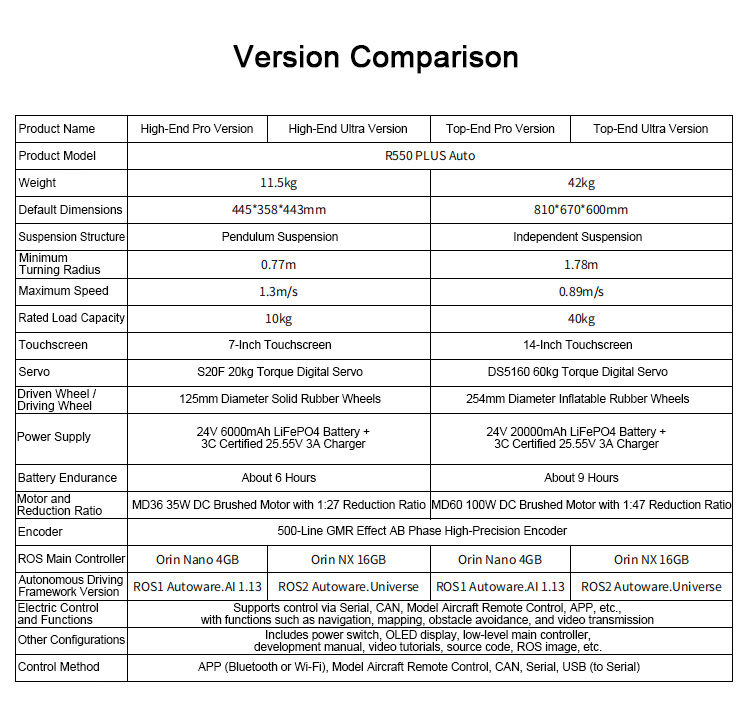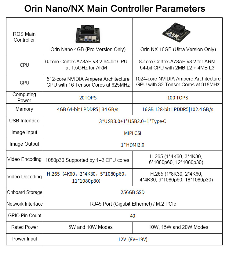 * Compared to the Pro version, the Ultra version upgrades the main control to Orin NX 16GB, and the software is upgraded to ROS2 Autoware.Universe.