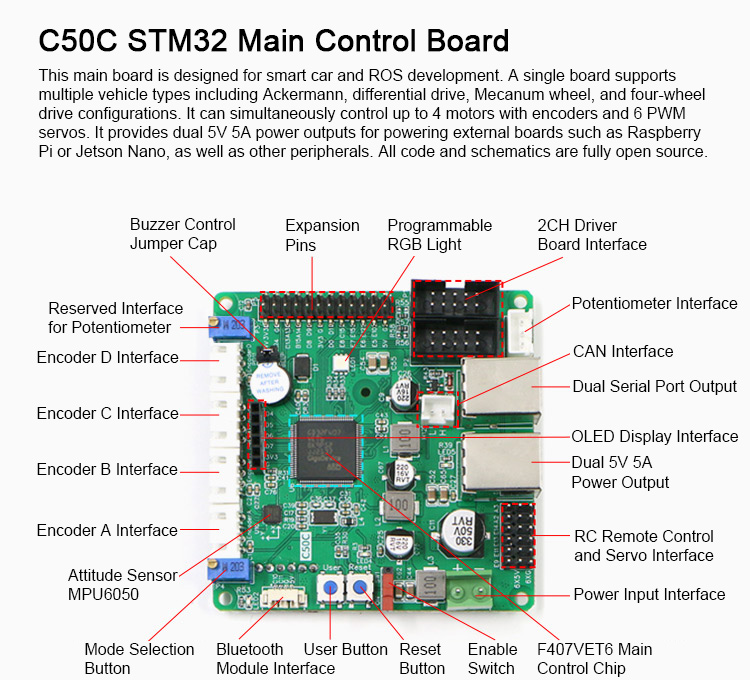 * The chassis is fully open source, including 3D models, source code, circuit diagrams, development manuals, etc., to help you efficiently carry out secondary development.