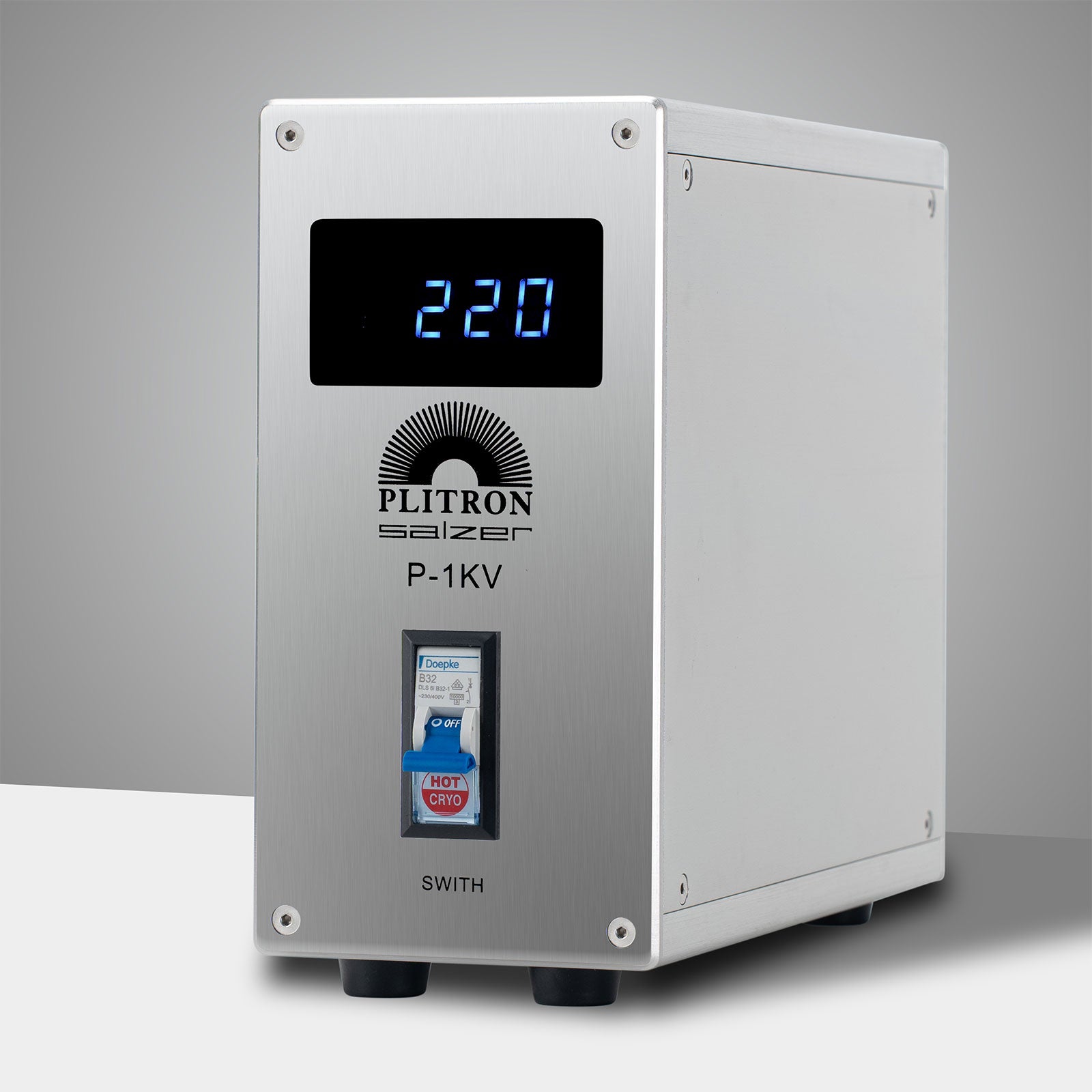 - Front panel: The screen displays 220V output voltage. 32A air circuit-breaker of the refrigerated version for German Doepke is used