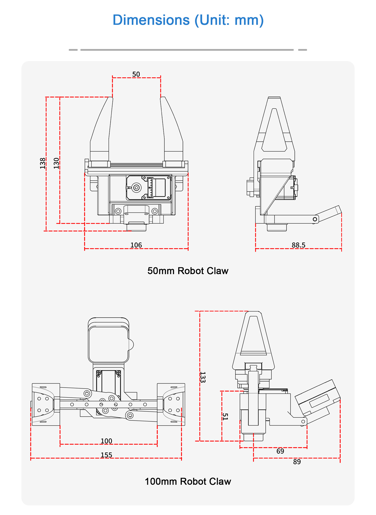 * Real-time grip force feedback adjustment: Servo torque options available are 35kg·cm and 50kg·cm