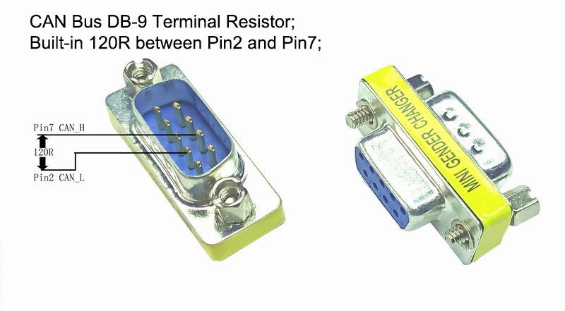 There is no 120 ohm termination resistor configured in the PCAN FD by default. This product is equipped with an external DB9 interface 120 ohm resistor