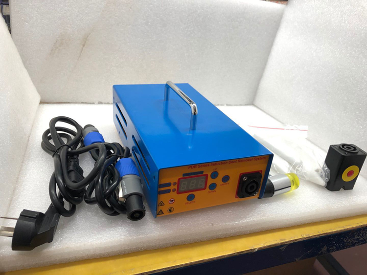 The PDR series paintless dent removal electromagnetic induction repair system enables fast and clean repair of dents on car bodies and doors, as well as other minor dents. It features a digital display screen, with adjustable repair time and power settings.
