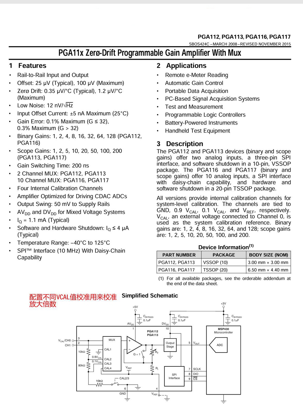 PGA113 Zero-drift Programmable Gain Amplifier with Mux Signal Conditioning Module 1-200X Adjustable Gain