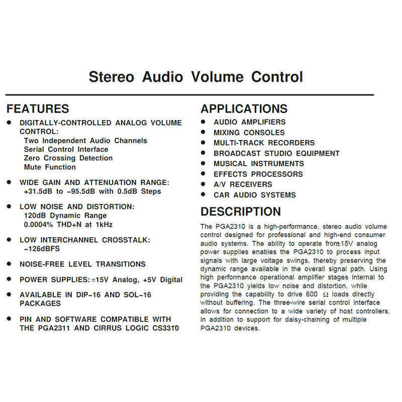 - PGA2310: Stands out in creating better sound quality. Distortion is as low as 0.0004%, overshadowing other preamplifiers.