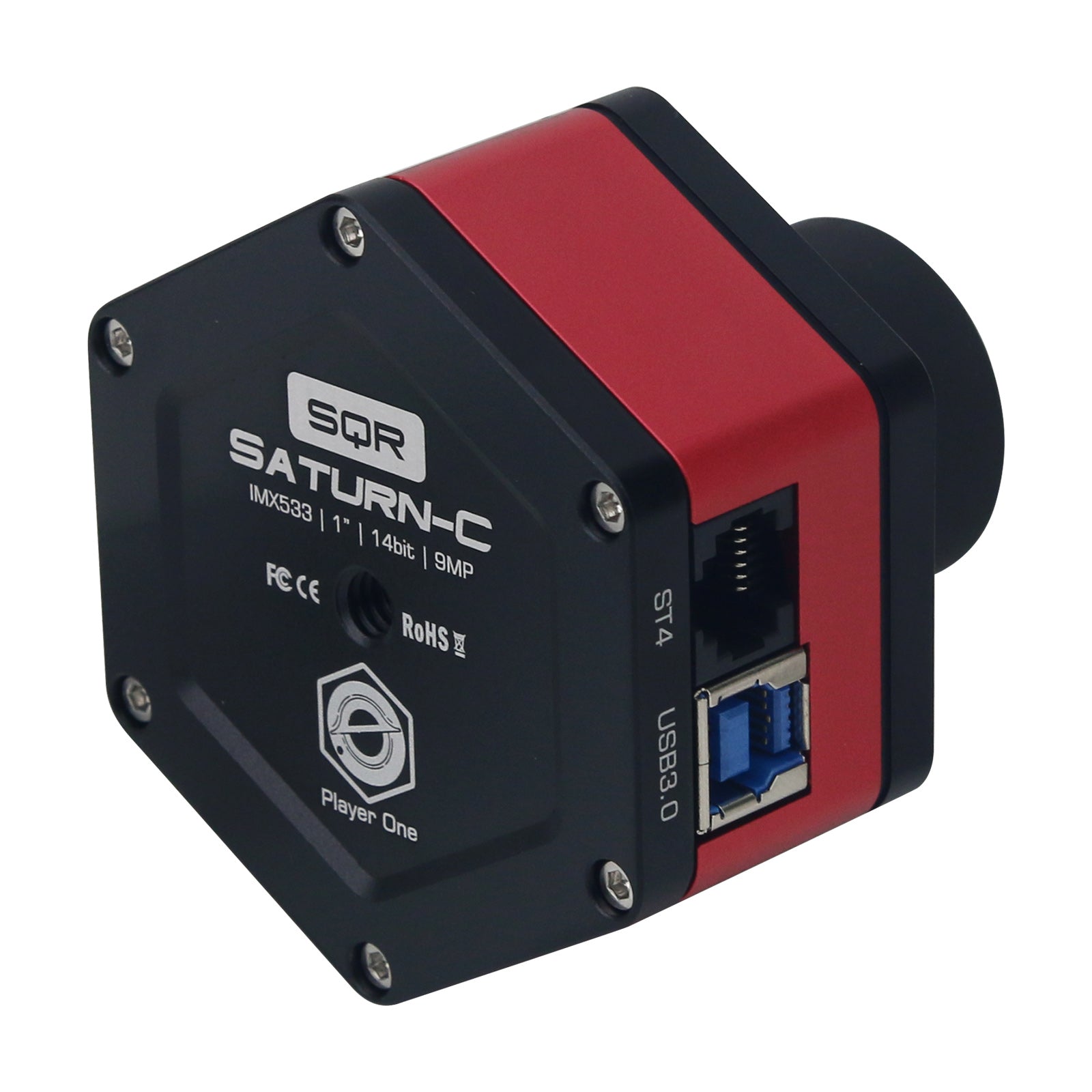 Saturn-C SQR (IMX533) camera is developed by Player One Astronomy. SQR means its sensor is square. The camera adopts an original IMX533 1" square format color sensor for Sony. The 3.76um pixel size accommodates a well depth of 73Ke with a total of 9MP (the resolution is 3008*3008), and the diagonal is 16mm.