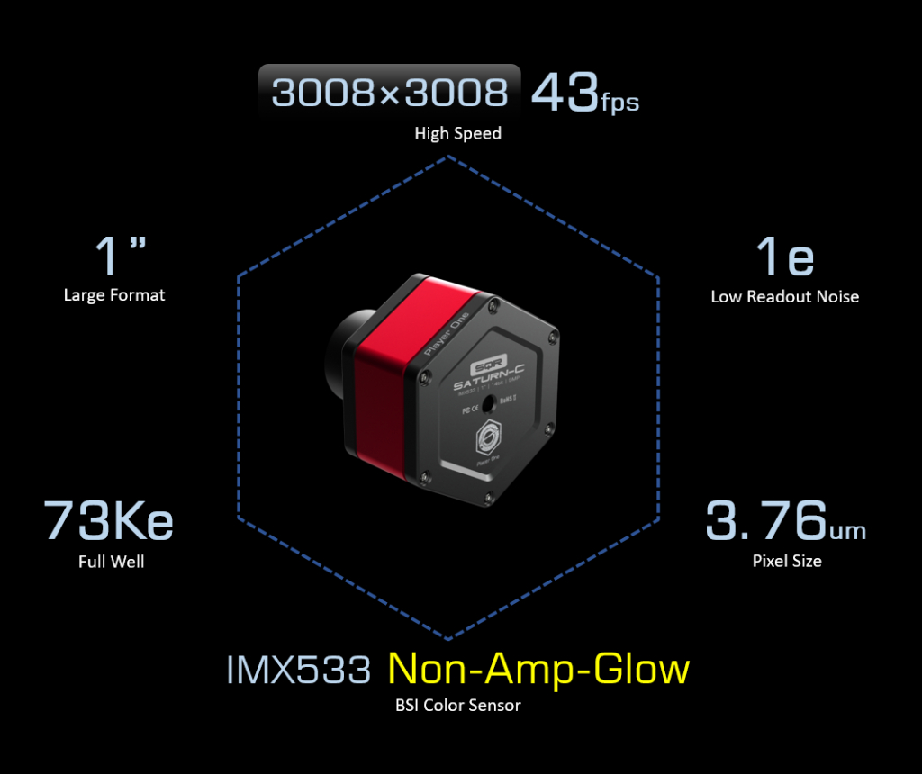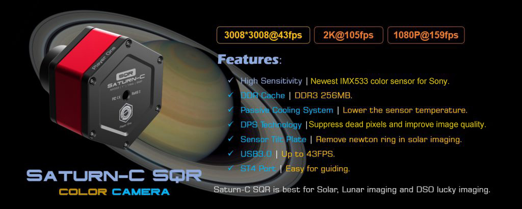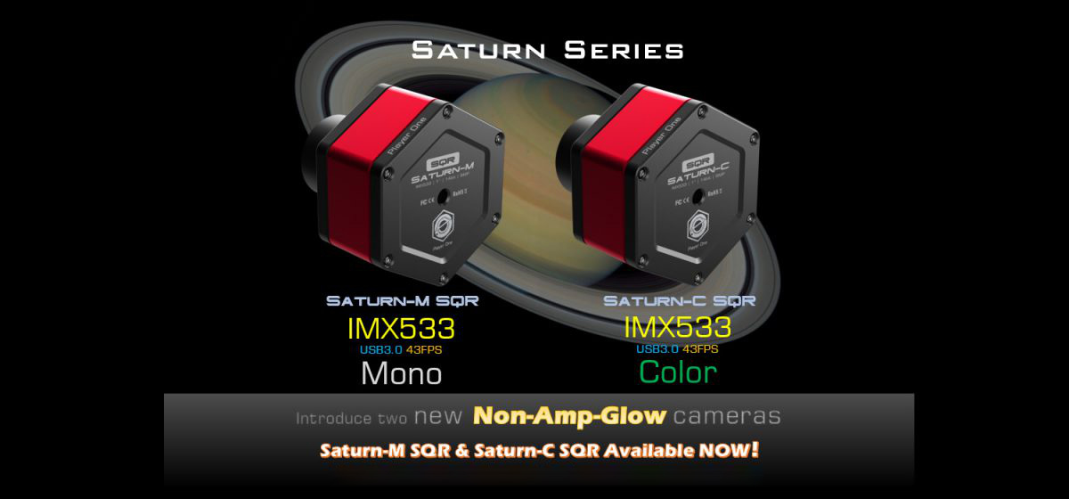 Saturn-M SQR and Saturn-C SQR are the most powerful planetary cameras in our history! Based on IMX533 BSI sensor, high image quality, high resolution and square format, and non-amp-glow feature, the camera is great for lunar, solar mosaic and DSO lucky imaging.
