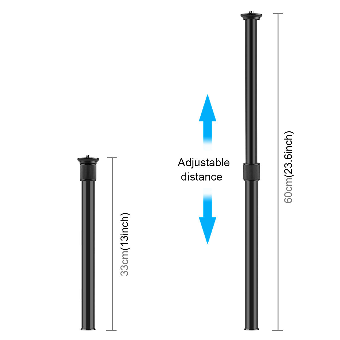 4. Adjustable length: Tripod extension tube with the telescopic design is good for free length adjustment from 33 to 60cm