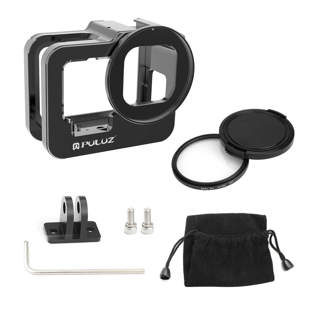 PU508B Thick Camera Cage Aluminum Alloy Housing Shell w/ Frame & 52mm UV Lens For GoPro HERO 9 Black