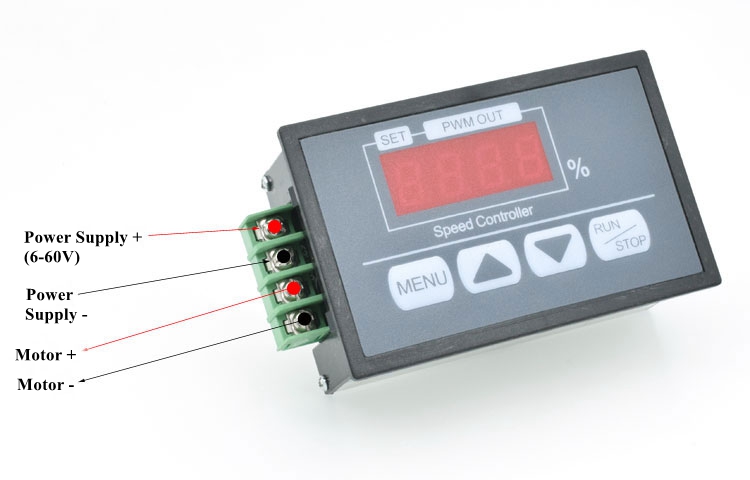 - The input voltage should be equal to the rated voltage of motor within 6-60V.