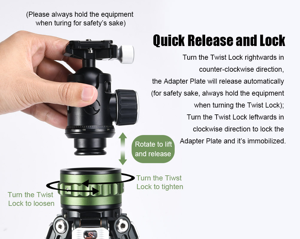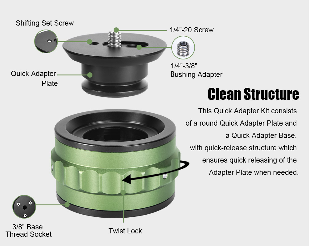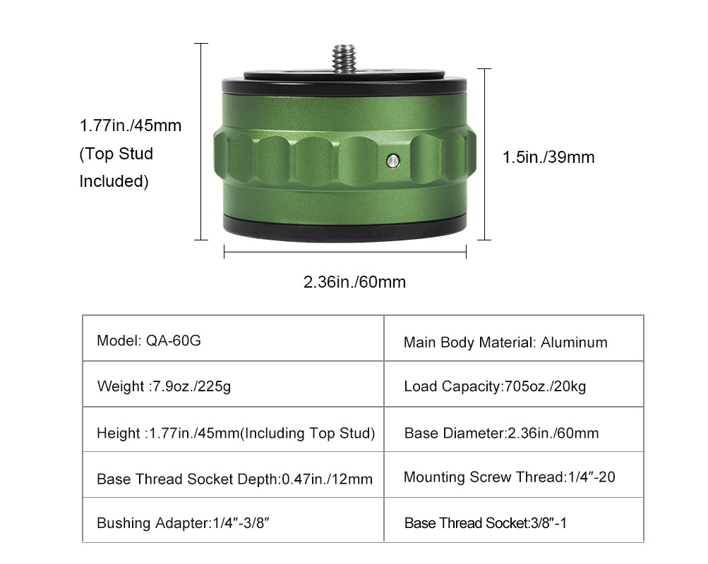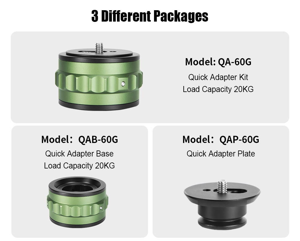 QAB-60G General Tripod Head Quick Adapter Base for Easy Switching Equipment Support 360 Degrees Free Rotation