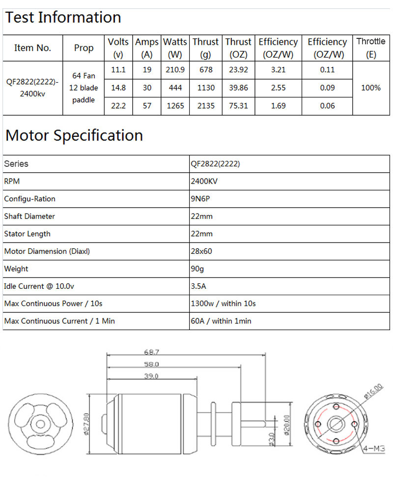 QF2822-2400KV 64MM Ducted Fan Motor 12-Blade EDF Motor Model Airplane Brushless Motor For RC Drone