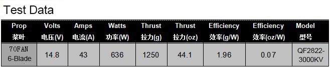 With QF2822-3000KV motor and 6 blades, this 70mm duct features strong power, high efficiency, low temperature. Suitable for the modification of ducted UAV above 1200g, it is your ideal choice!