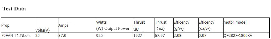 With QF2827-1800KV motor, this 12-blade 70mm duct is powerful and efficient! It features low temperature. It is suitable for the modification of ducted aircrafts around 1500g, which is your ideal choice!