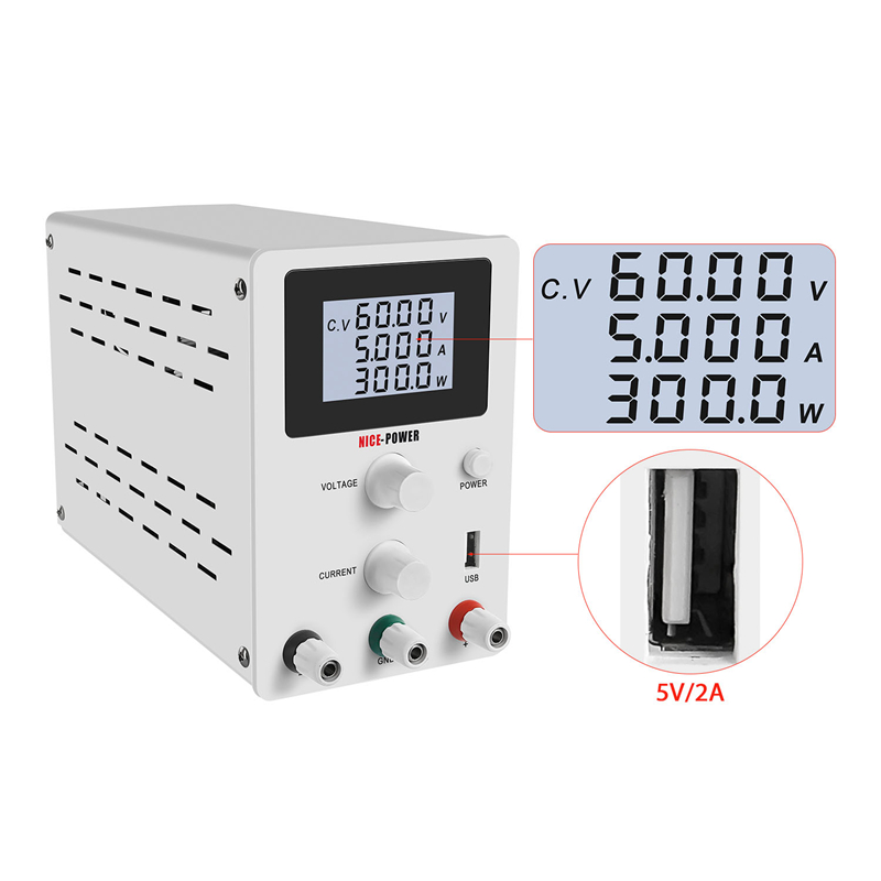 R-SPS605D Adjustable DC Power Supply Switching Power Supply Output 0-60V 0-5A 4-Digit Display White