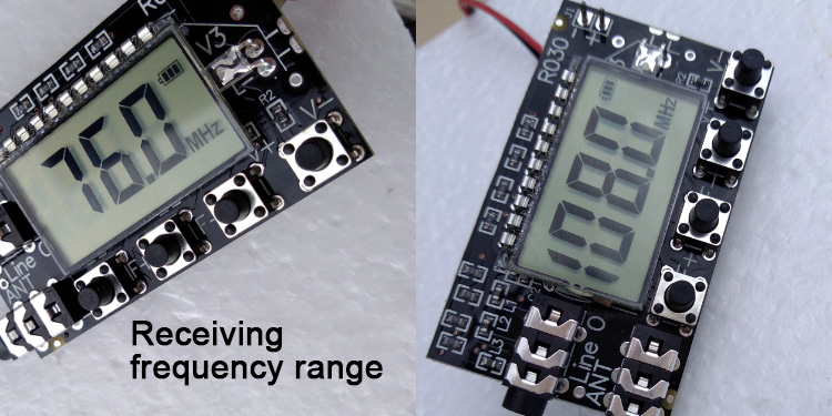 - Receiving frequency range: 76.0MHz-108.0MHz