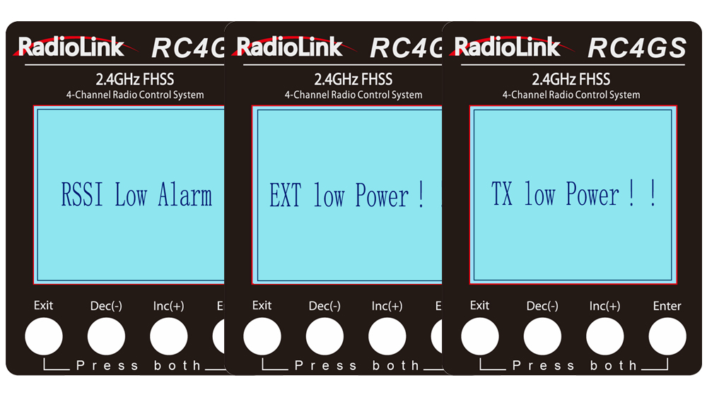 - Real-time Information: RSSI, receiver signal can be display on screen when it works with Radiolink R7FG receiver.