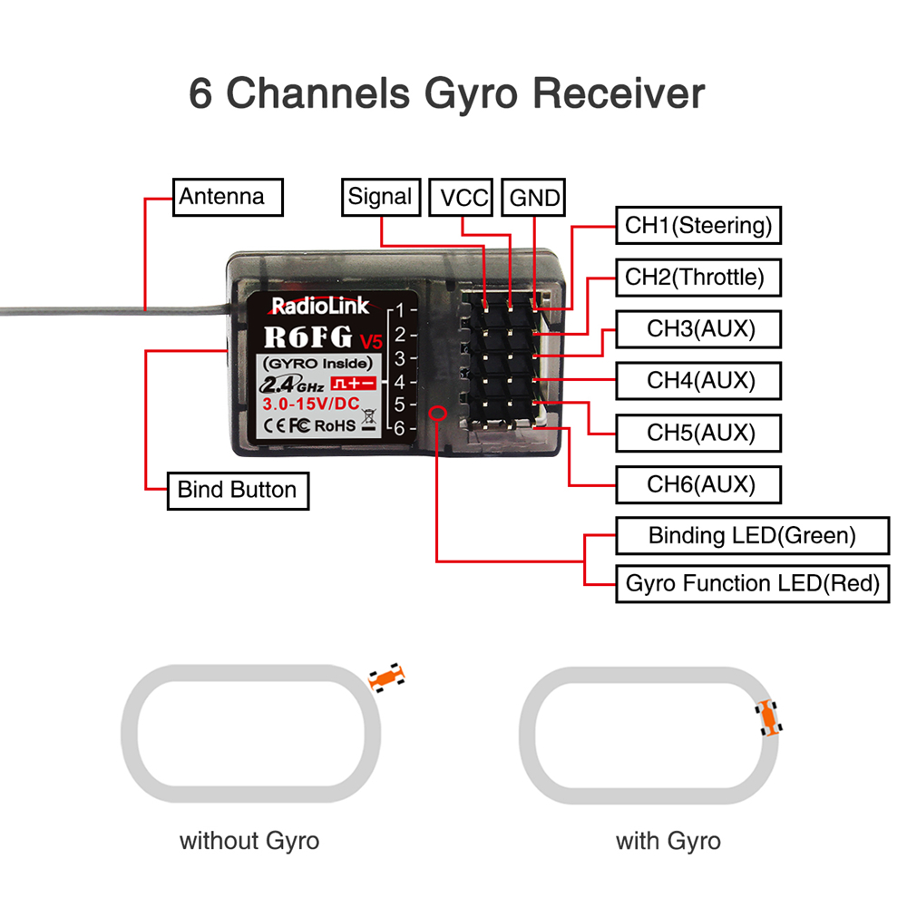 - Compatible Receivers: Radiolink R7FG/R6FG/R6F/R4FGM/R4F/R8EF/R8F