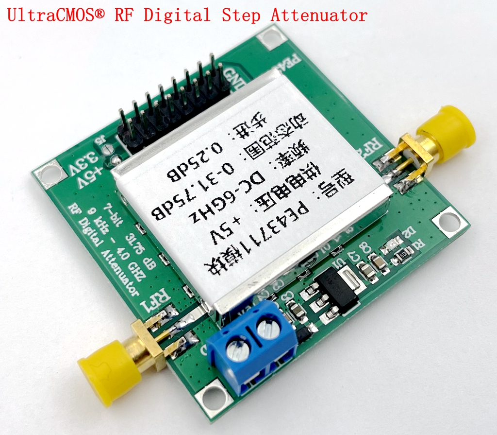 - The PE43711 is a high linearity, 7-bit digital RF step attenuator with a "DSA" attenuation range of 0.25 dB steps to 31.75 dB. The frequency range is attenuated from DC-6GHz. The 50 ohm RF DSA provides parallel and serial CMOS control interfaces that operate on a single 5V power supply and maintain high attenuation accuracy of frequency and temperature. It also has a unique control interface that allows the user to select the initial attenuation state at power on. It has a shielding shell and anti reverse connection protection diode.