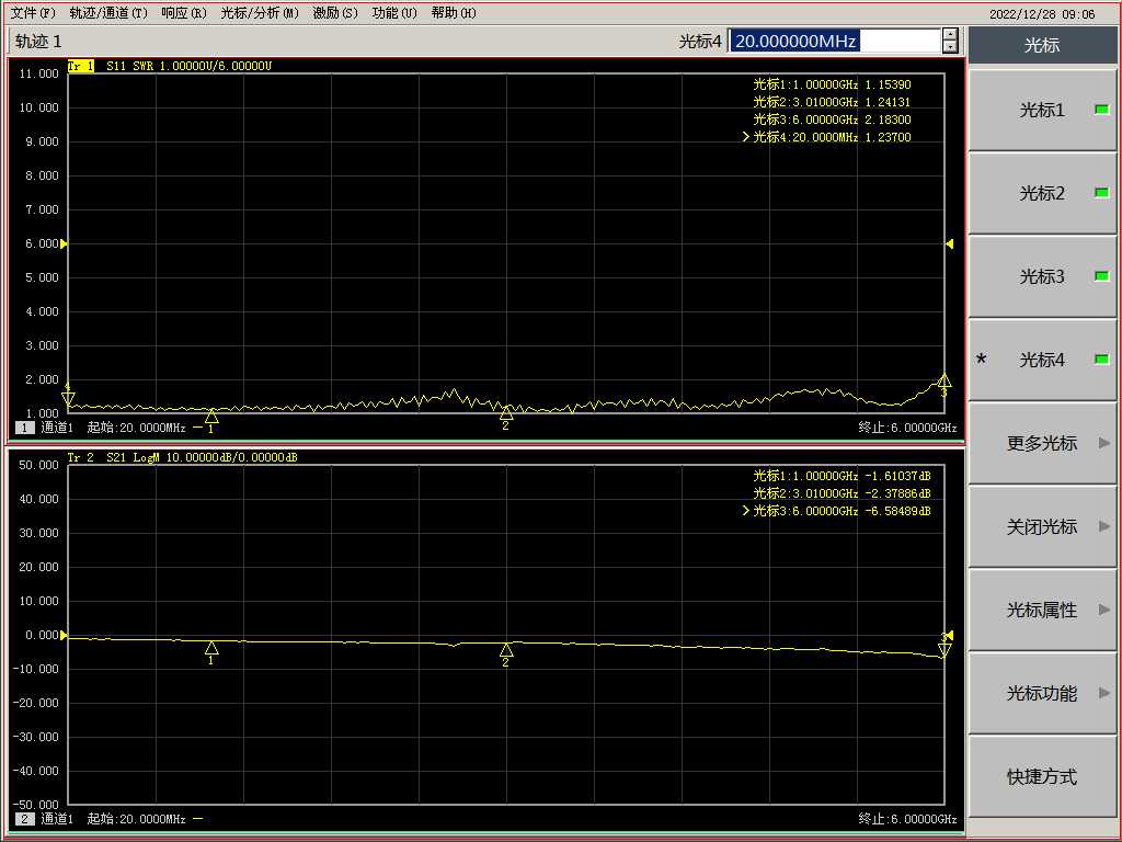 - Bandwidth: DC-6GHz (Attenuation values are different at different frequencies. Please refer to S21 curve indicators for details)