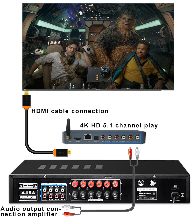 - Built-in (RKMC) and (desktop) local playback software can play locally downloaded 5.1 movies or music for 5.1 channel surround effect.