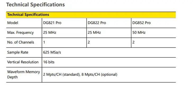 - Based on RIGOL's SIFI ll technology, the DG8xx Pro series can generate any waveform point by point and restore signals without distortion. The sampling rate is precisely adjustable. Compared to traditional DDS signal sources, the generated signal jitter is lower, with all output signal jitter as low as 200ps (rms).