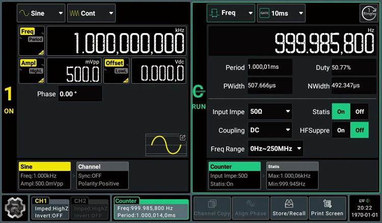 - Independent signal frequency measurement channel with a max. frequency of 500MHz
