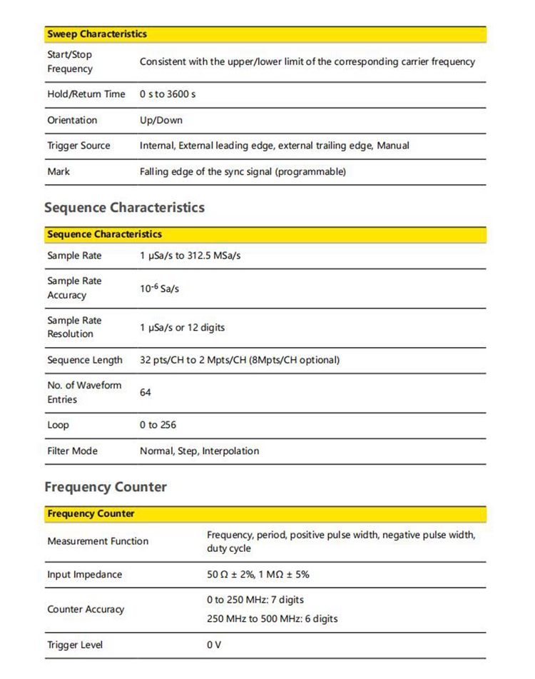 - Arbitrary waveform editing function with a max. Arb waveform length of 2Mpts/CH