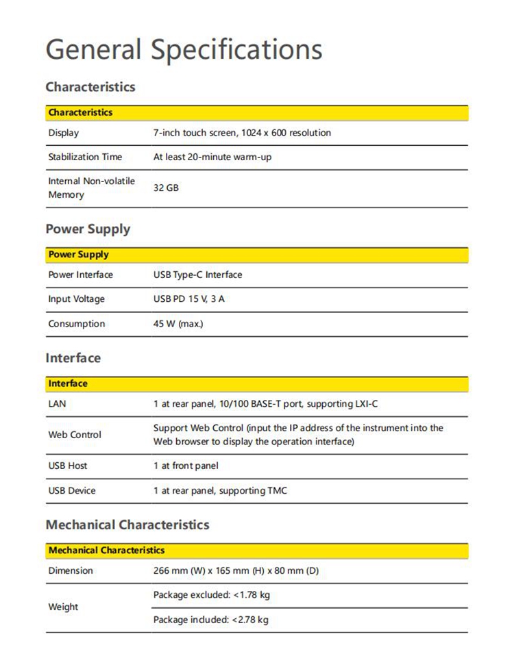 - Type-C power interface for powering the instrument with mobile power source, satisfying testing requirements in the field