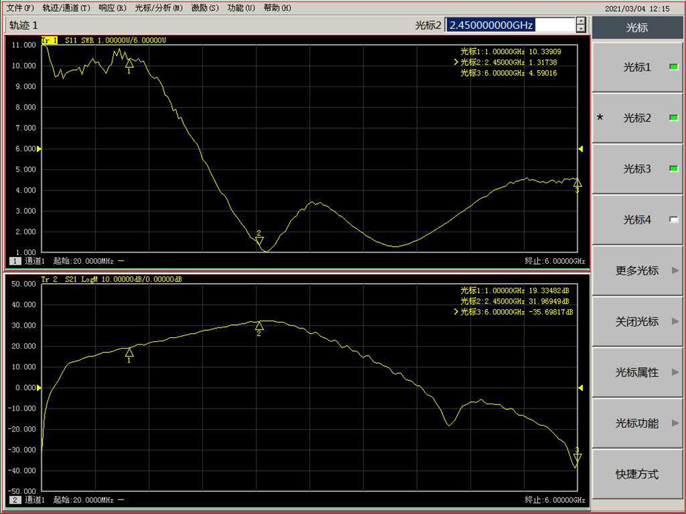 3. Gain: 30DB (Refer to the measured curve for different frequencies)