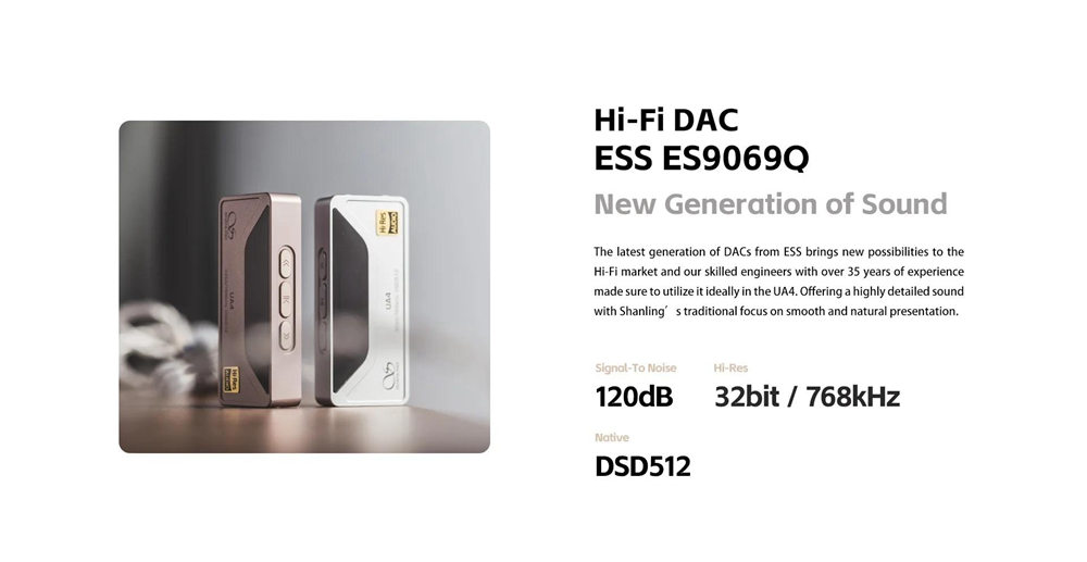 SHANLING Silvery UA4 Portable Decoder Headphone Amplifier 3.5/4.4 Balanced HiFi DAC Support 32Bit/768kHz DSD512