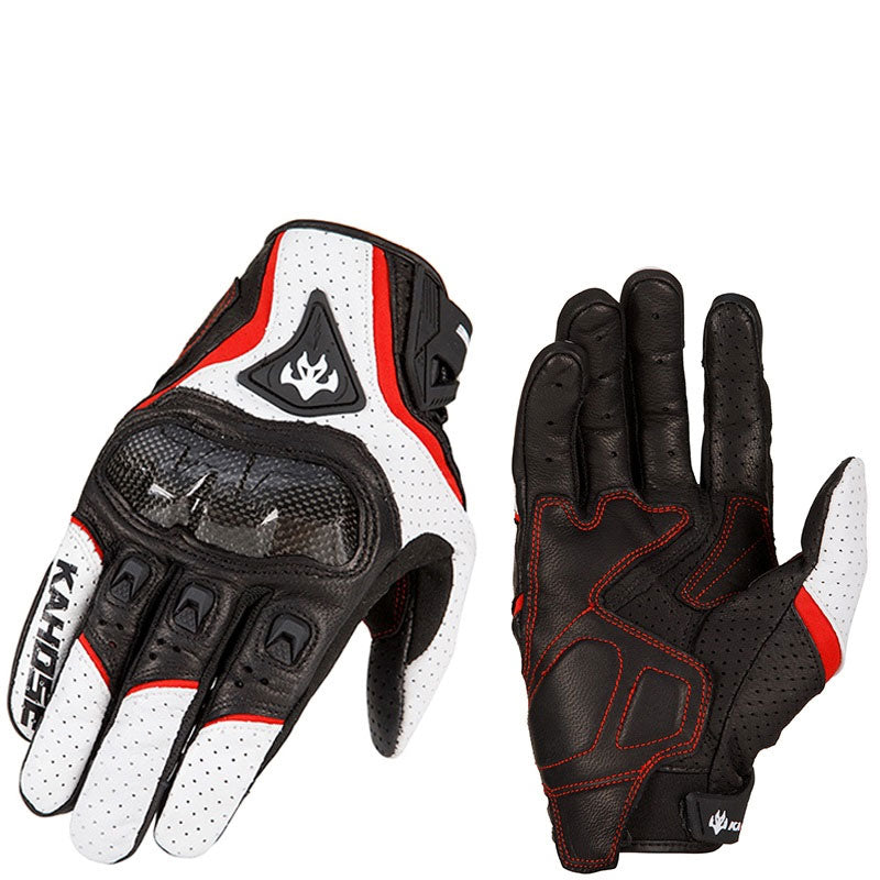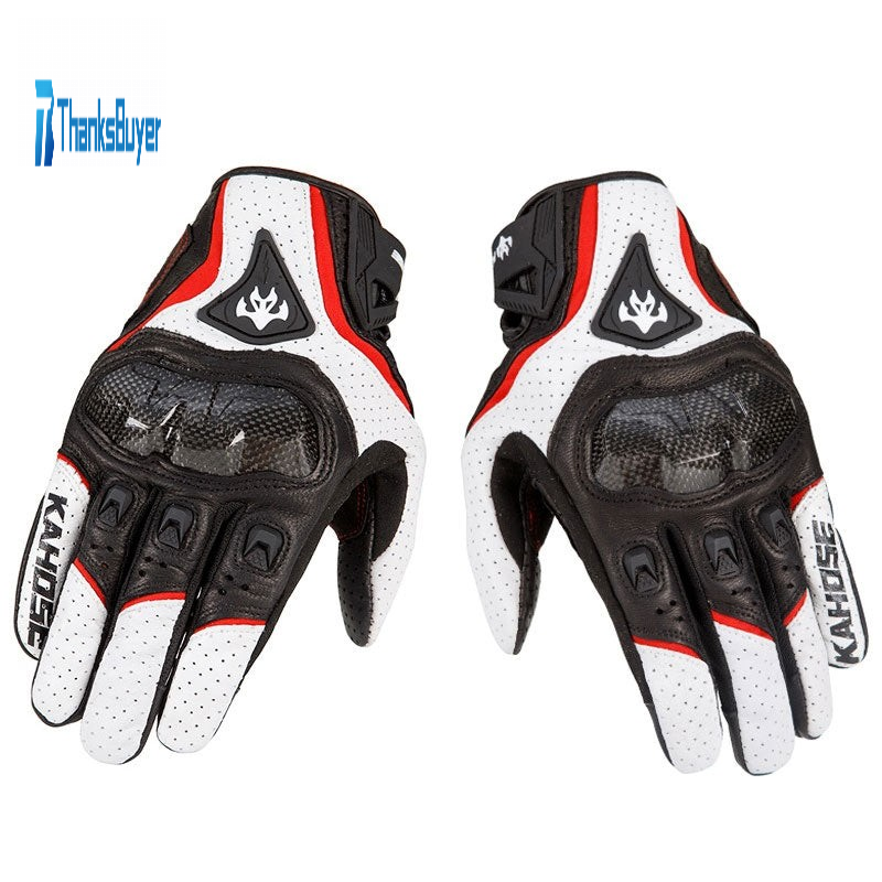 Simplayer White Racing Gloves Men Sheepskin Gloves w/ Carbon Fiber Protective Shell for Touch Screen