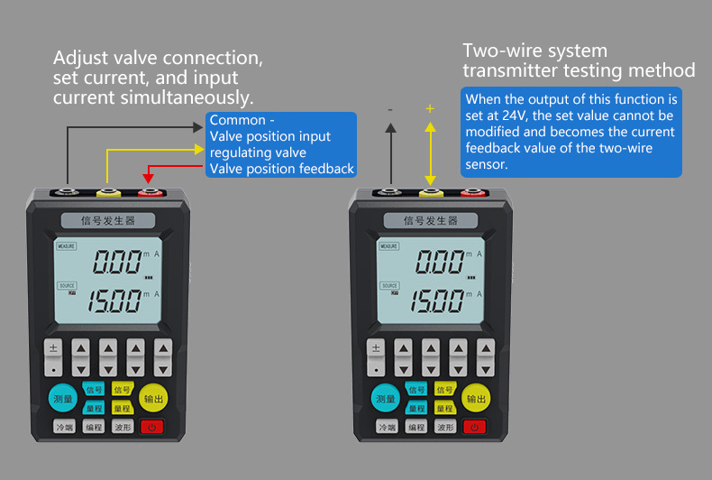 - Programming signal source: four types of waveform output (normal timing, rising sawtooth wave, falling sawtooth wave, square wave), simulate function signal.