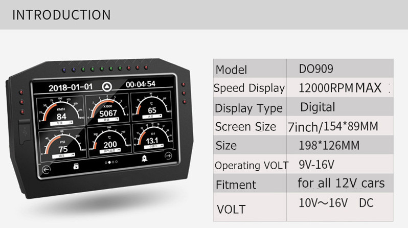 SINCOTECH DO909 Car Racing Dashboard Digital Display Gauge Full Sensor Kit Colorful LCD Touch Screen