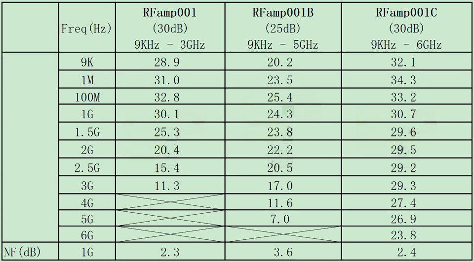 - Input RF signal power: <= -30dBm, limiting DC voltage 15V