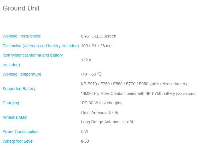 11. What are the dimensions and the weight of the HM30 unit and the FPV camera?