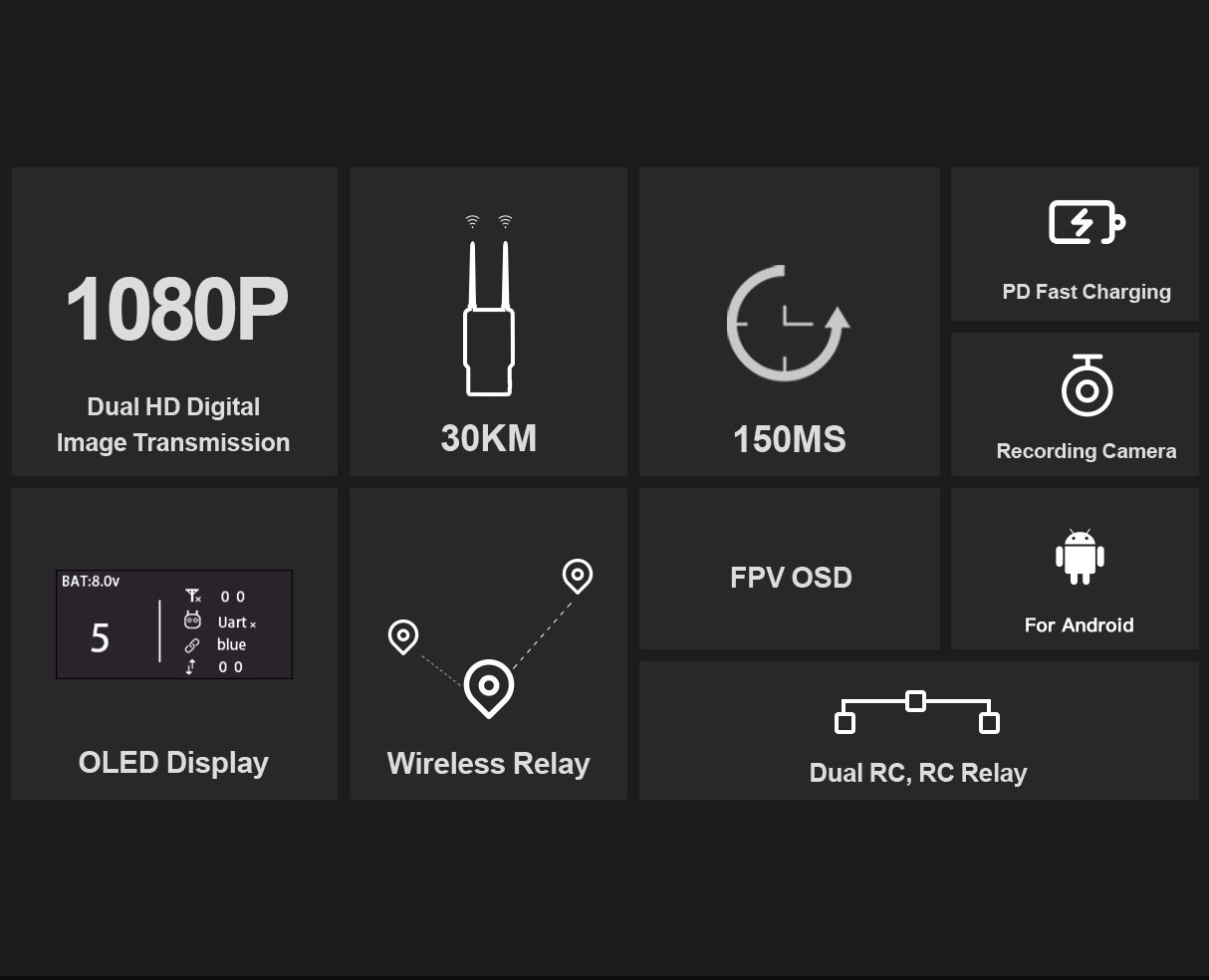 SIYI HM30 FPV Combo 30KM 1080P HD RC Transmitter Receiver RC TX RX Digital Image Transmission System