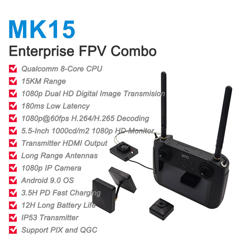 SIYI MK15 Enterprise FPV Combo 15KM RC Transmitter Receiver Image 1080P Transmission System