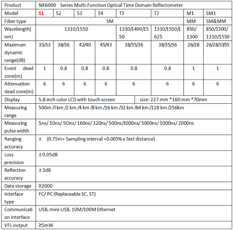 SM OTDR Optical Time Domain Reflectometer 1310/1550 35/33dB built in FLS OPM VFL IOLM NK6000-S1