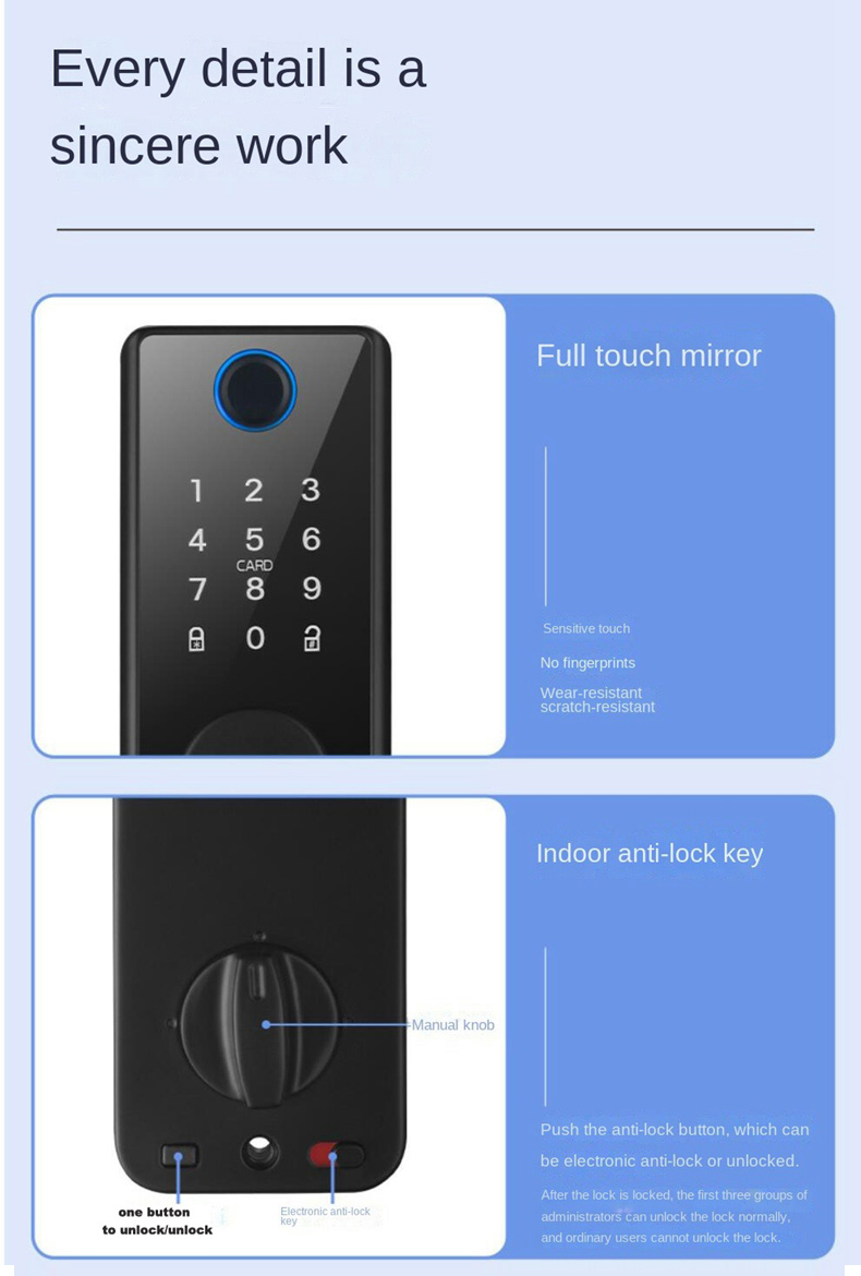 Smart Door Lock Deadbolt Lock Supports Fingerprint + Password + IC Card + Tuya APP + Key to Unlock
