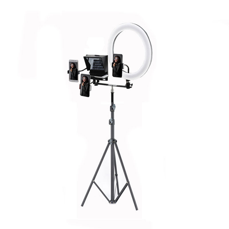 Smartphone Teleprompter Portable DSLR Camera Prompter with Phone Clip Tripod Fill Light for Live