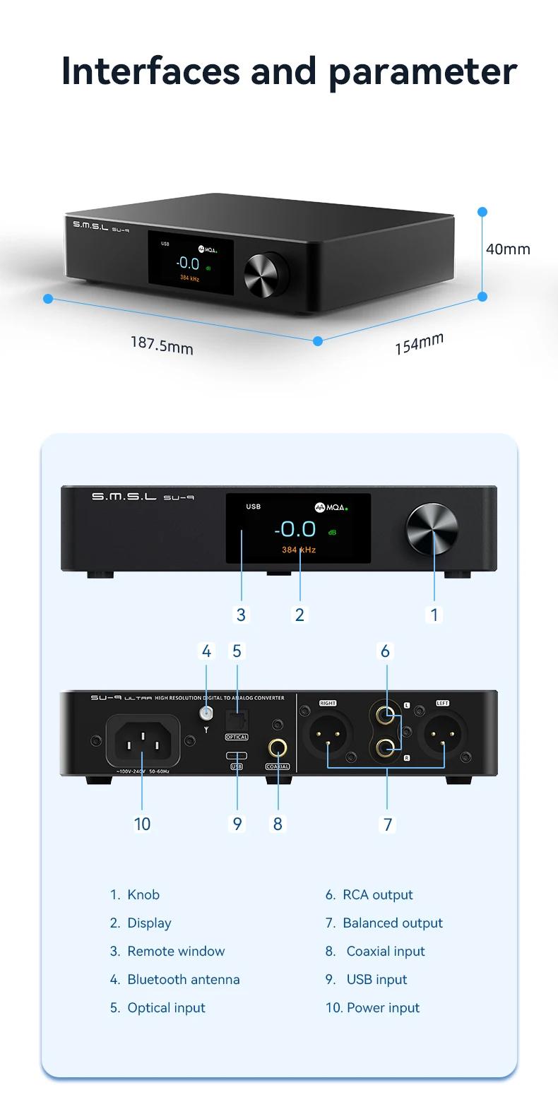 SMSL SU-9 ULTRA MQA/MQA-CD Audio Decoder HiFi DAC AK4191+AK4499EX DSD512 Digital to Analog Converter Support LDAC