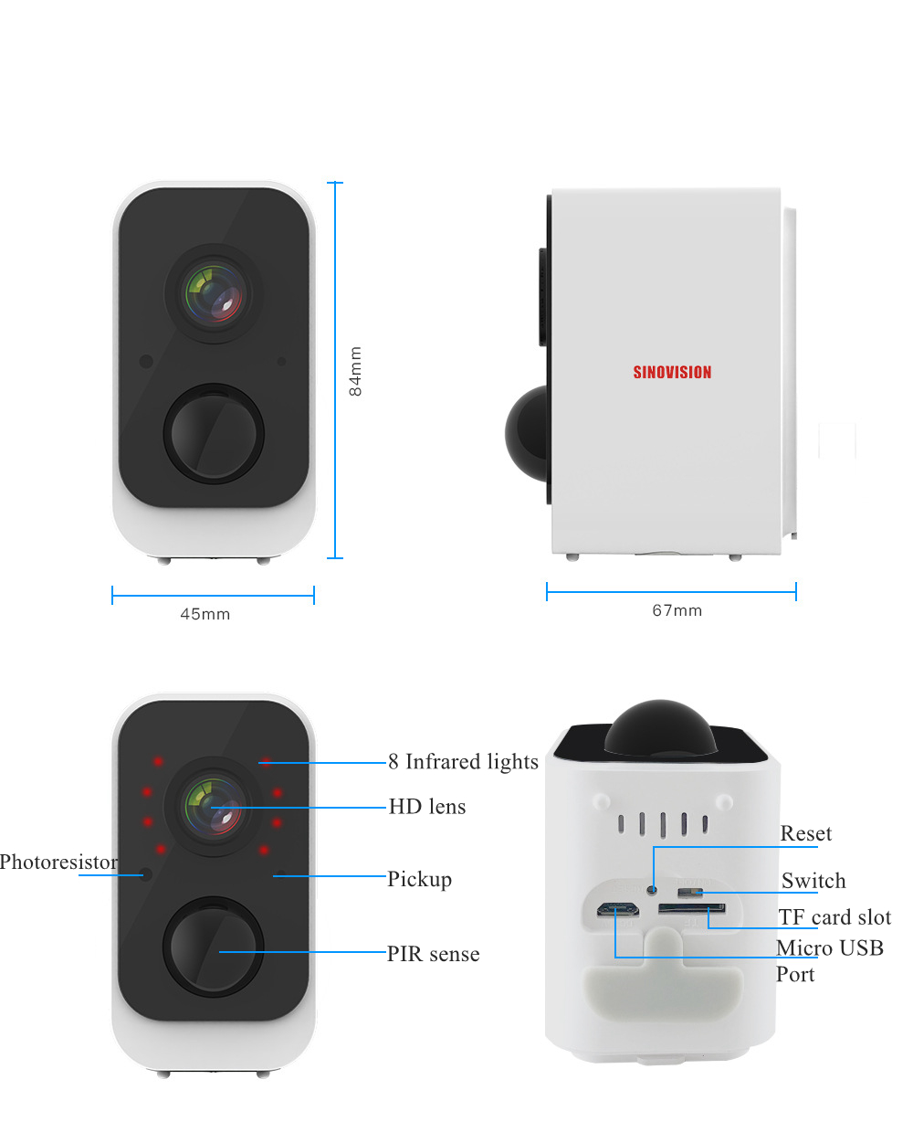 SN-S2 Home Wireless Security Camera 2MP 1080P Wifi Battery Camera Motion Detection HD Night Version