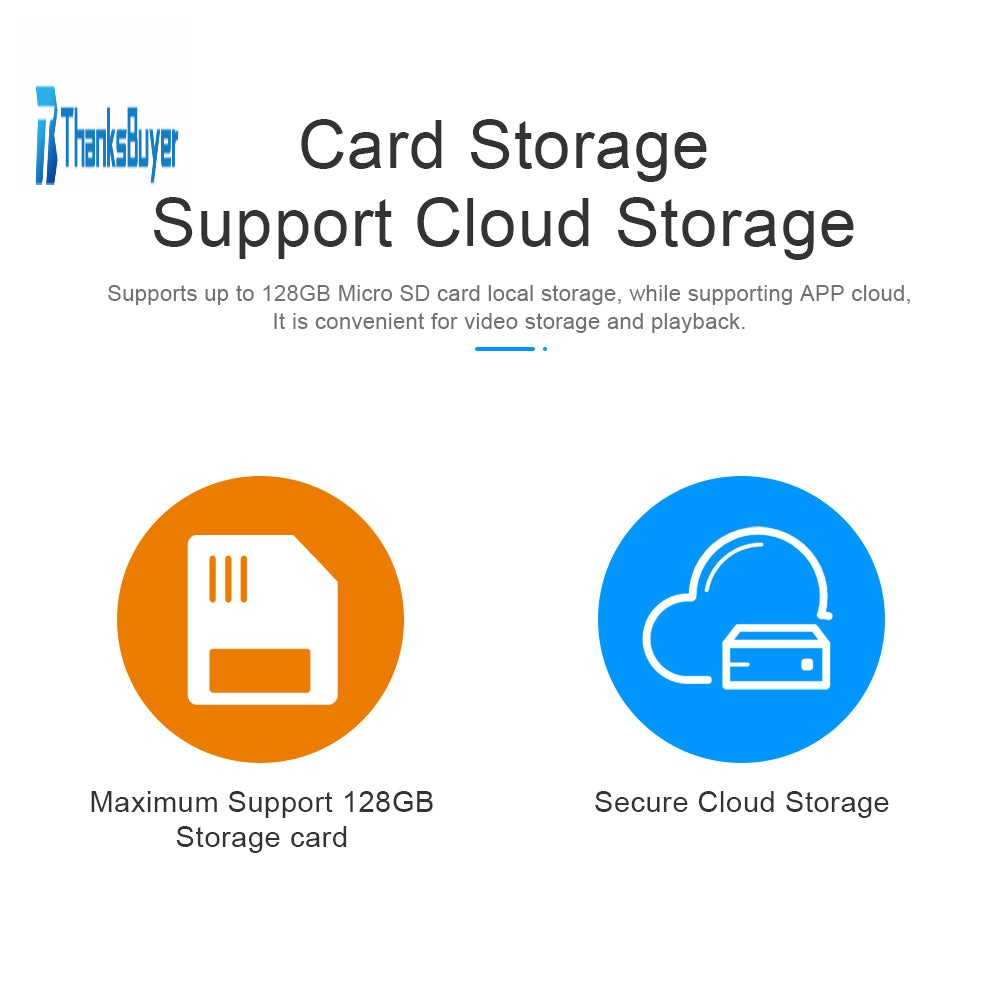 - Support TF card (microSD) local storage up to 128G and APP cloud storage, for easy video storage and playback.