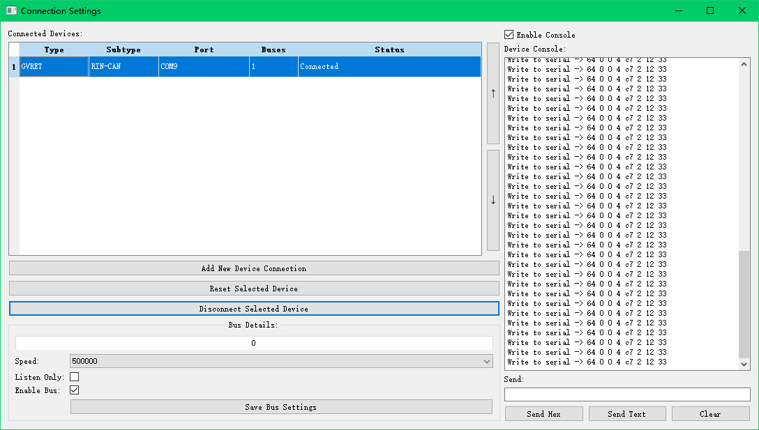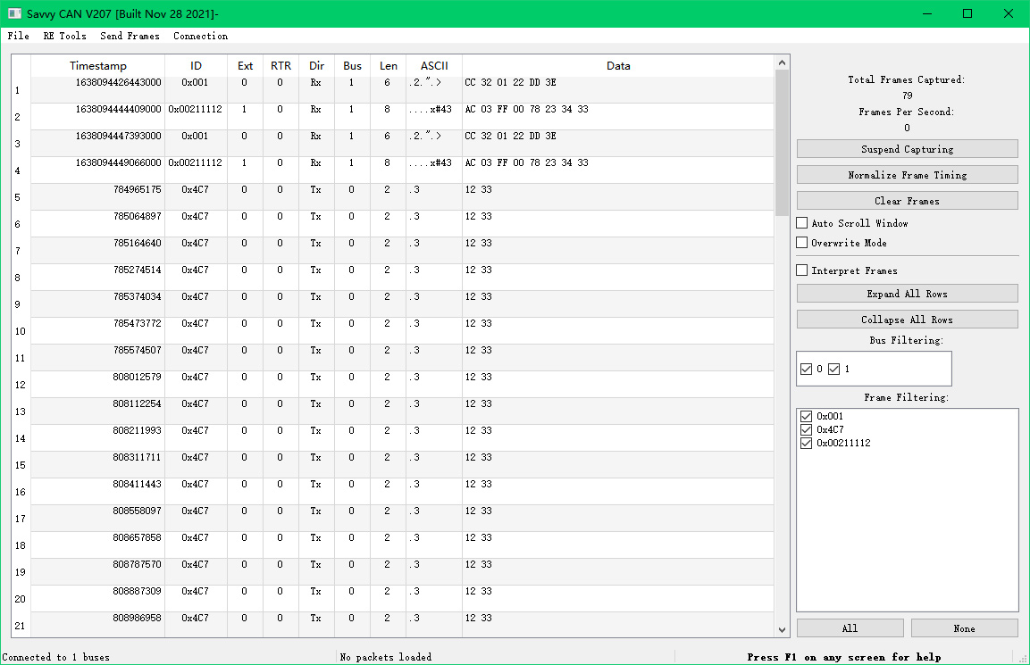 5. The upper computer software is SavvyCAN. It has functions such as CAN analyzer settings, sending and receiving messages and DBC parsing.