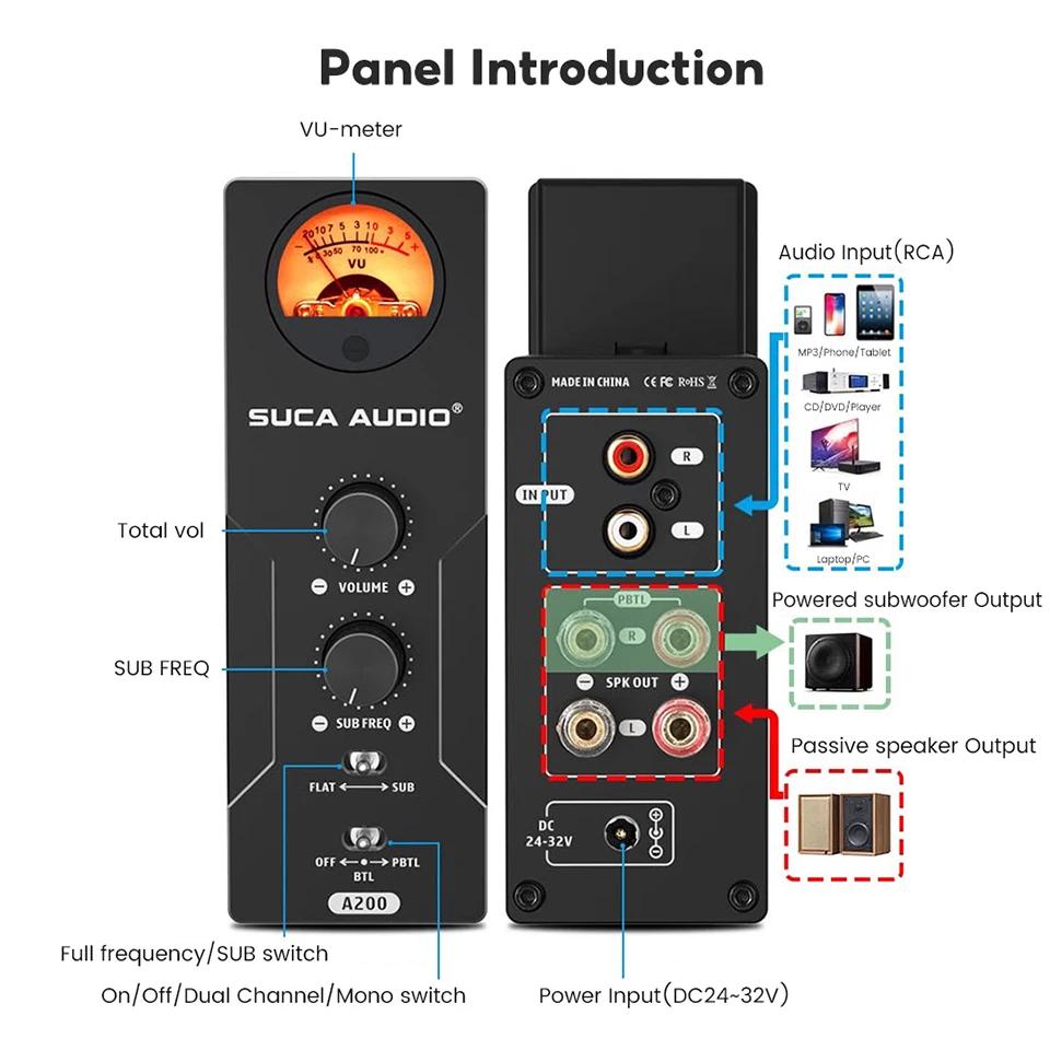 SUCA AUDIO A200 Power Amplifier 160W+160W High Power Mega-bass 2.1 Channel Stereo Professional Subwoofer