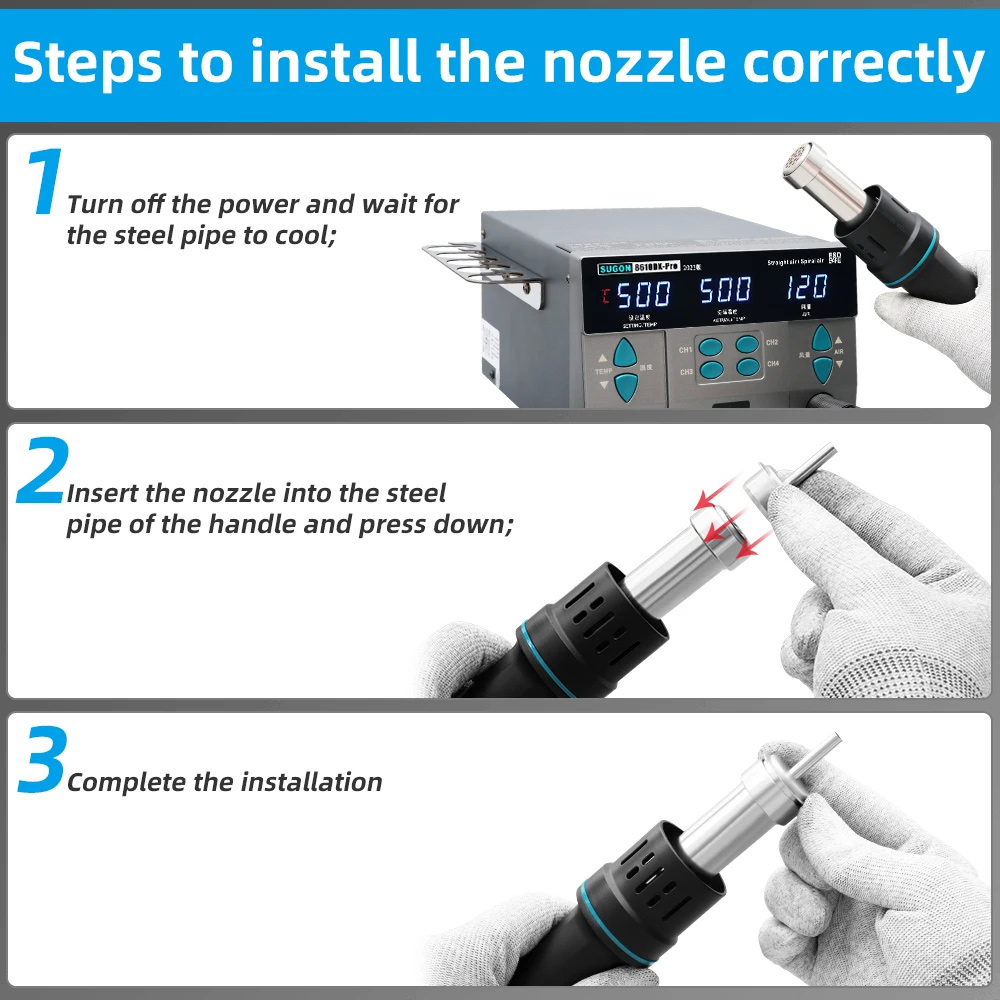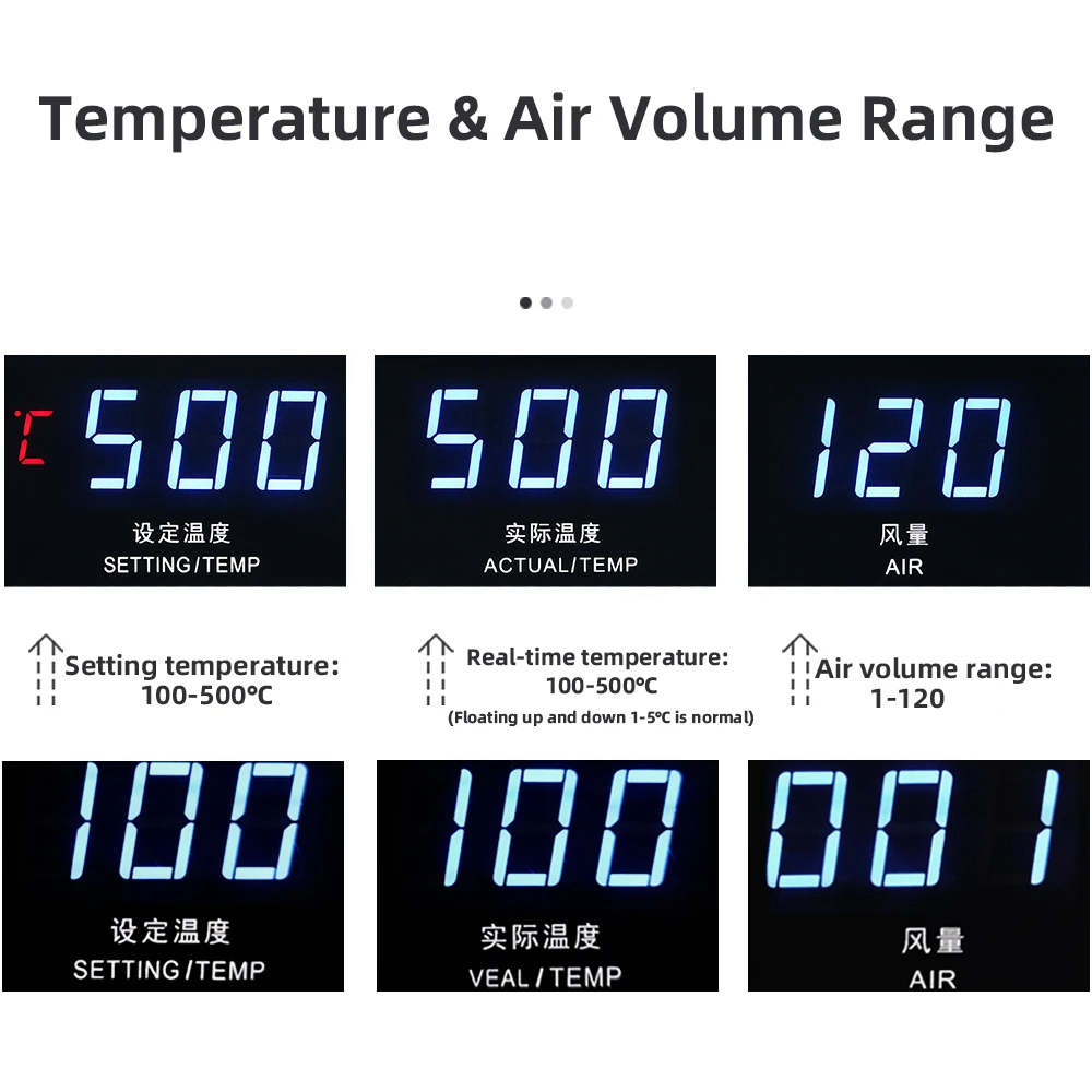 7. The system is equipped with automatic large air volume cooling function to prolong the life of the heating element and protect the hot air handle.
