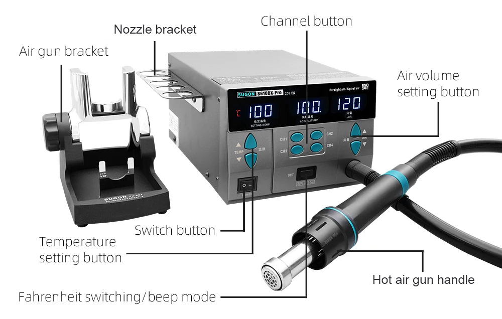 SUGON 8610DX-Pro 1000W Hot Air Gun Station BGA Rework Station Desoldering Station for Cellphone CPU